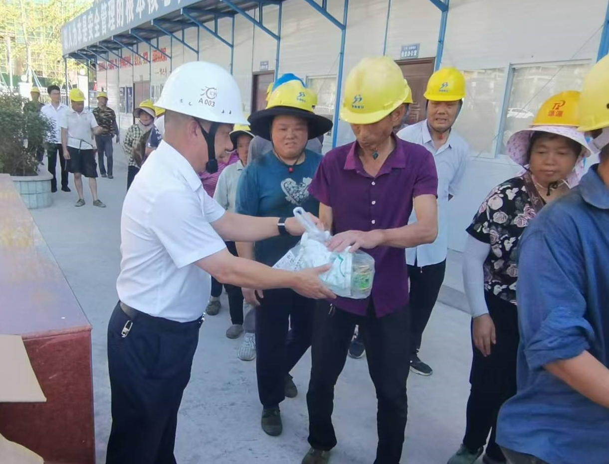 8月7日上午,集團(tuán)公司副總經(jīng)理劉剛到匯興·東岸項(xiàng)目為一線工人發(fā)放清涼物品,強(qiáng)調(diào)項(xiàng)目管理人員要做好防暑降溫工作,改善勞動(dòng)條件和優(yōu)化作業(yè)時(shí)間,保障一線工人高溫作業(yè)安全。