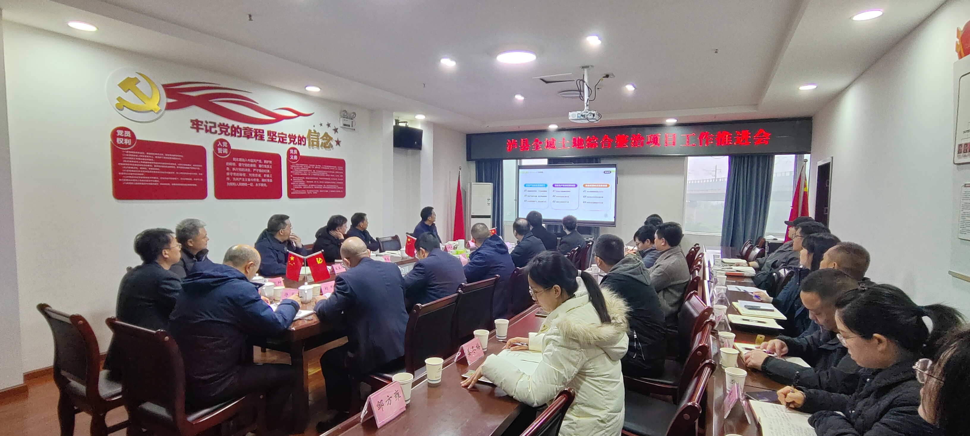 12月4日下午,瀘縣全域土地綜合整治項(xiàng)目工作推進(jìn)會在匯興集團(tuán)三樓會議室召開,會議聽取了鄉(xiāng)村振興產(chǎn)業(yè)重點(diǎn)項(xiàng)目戰(zhàn)略規(guī)劃相關(guān)情況的匯報,并現(xiàn)場討論了有關(guān)項(xiàng)目實(shí)施的可行性、存在問題及解決路徑??h政府二級調(diào)研員杜作文、集團(tuán)公司董事長黃寧,縣自然資源和規(guī)劃局、三項(xiàng)試點(diǎn)改革推進(jìn)辦、中咨公司、等相關(guān)單位人員參會。